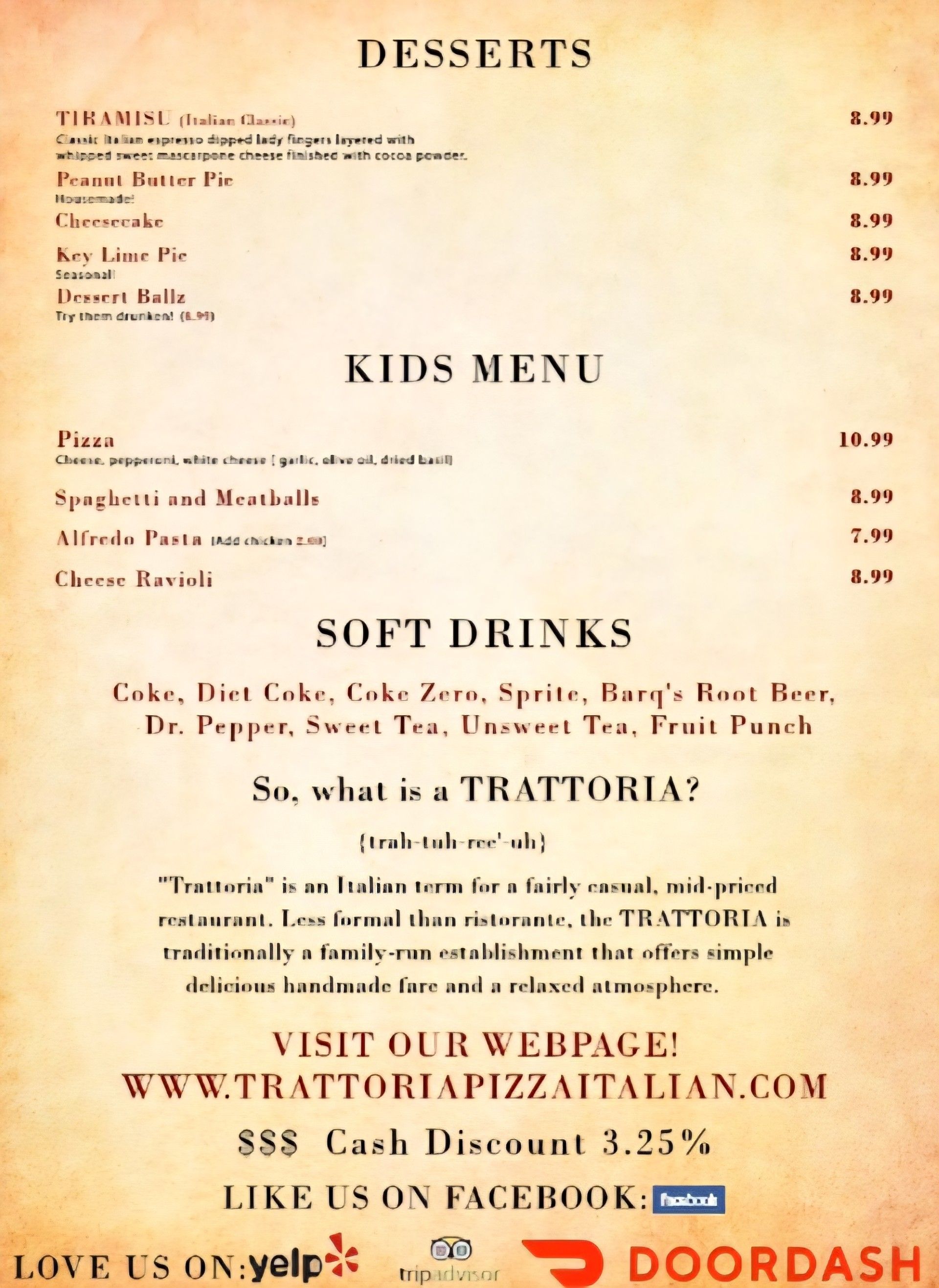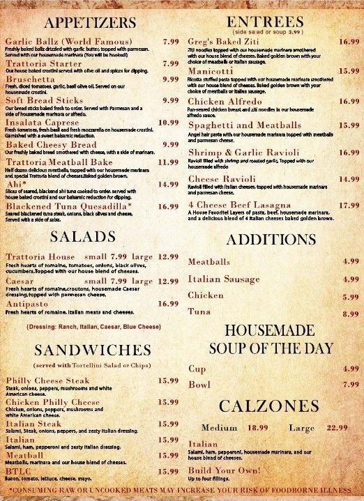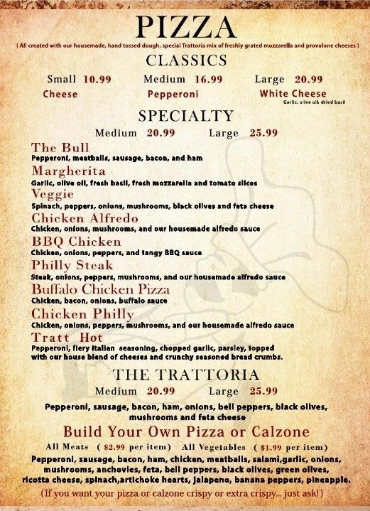 Lunch Menu and Dinner Menu from Trattoria Pizza & Italian